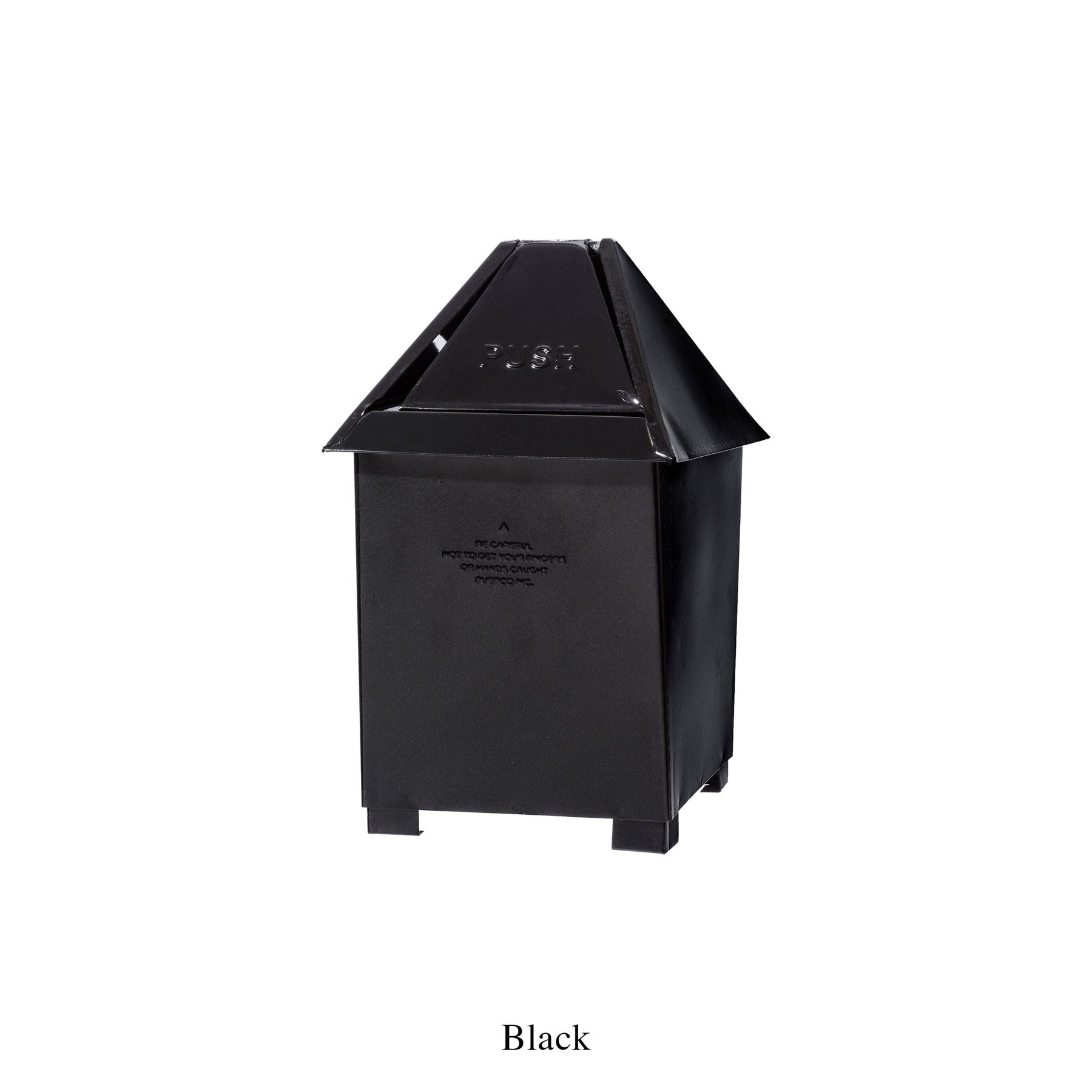 Featuring a black steel finish this perfectly sized countertop dustbin is great for keeping your beverage area neat and tidy. Stray from the conventional countertop dustbin design with Puebco's signature industrial inspired look with embossed utilitarian lettering and reclaimed steel. Features a hinge top opening for easy emptying and clean up.